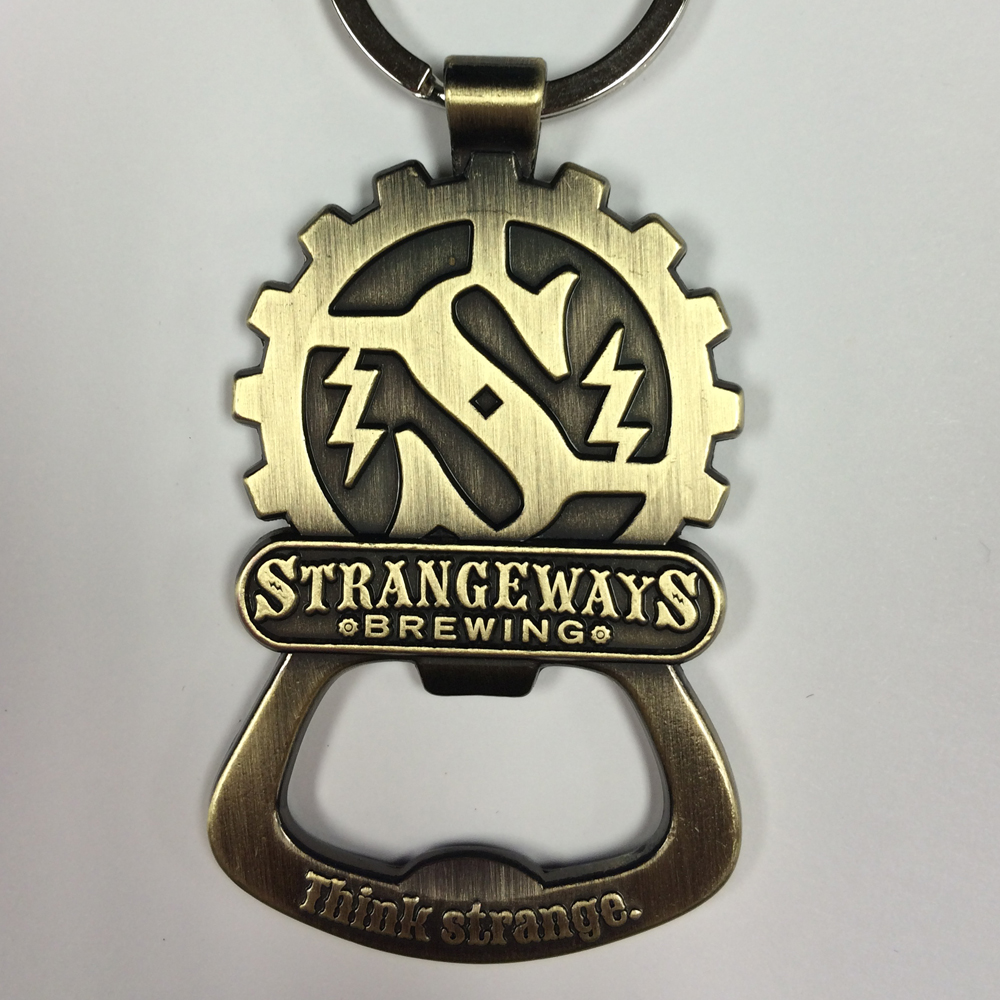 Bottle Opener on Keychain with Double-Sided Strangeways Logo in Gold