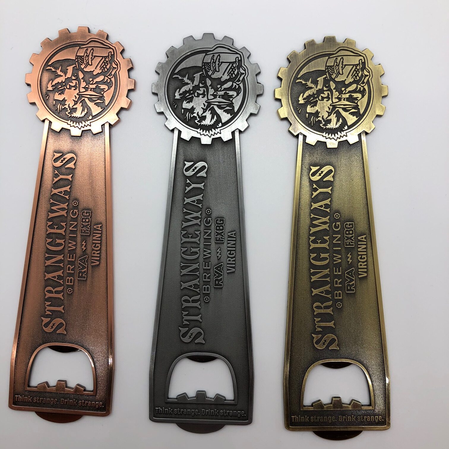 Custom cast metal openers in Pewter, Copper and Bronze.